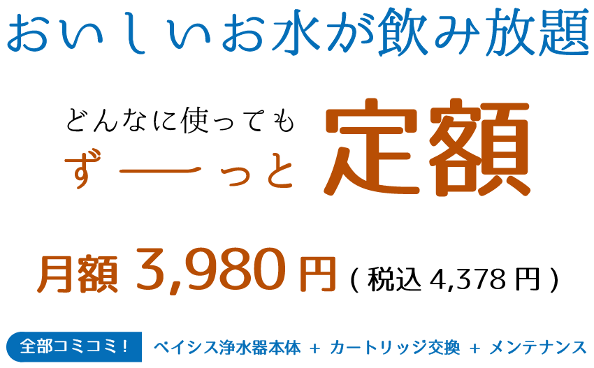 BASIS WATER SYSTEM 月額レンタルは、税別3,980円/月(交換カートリッジ込)でBASIS WATER SYSTEMをご利用いただける、お得なレンタルプランです。